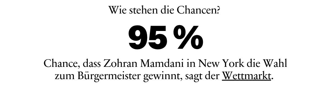 schon lange habe ich in diesem Newsletter nicht mehr geschrieben, dass eine Woche in die Geschichte eingehen könnte. Diese Woche ist es wieder so weit: In New York könnte Zohran Mamdani die Wahl zum Bürgermeister gewinnen und die Interessen der Mehrheit und nicht die der Reichsten ins Zentrum rücken.