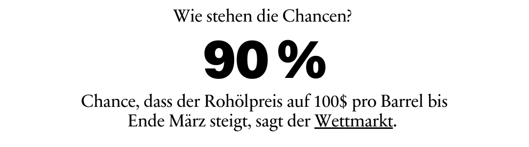 Mittlerweile sind die Wirtschaftsfolgen auch in Deutschland angekommen. Die Benzinpreise und Heizölpreise werden schon im Vorfeld des Preisschocks drastisch angehoben. Das Institut der Deutschen Wirtschaft (IW) prognostizierte vergangene Woche einen BIP-Verlust von 0,3 Prozent, sollte der Preis bis zur 100-Dollar-Marke klettern. Während dieser Kostenschock real ist, fantasierte der designierte Wirtschaftsweise Felbermayer auf makabere Art und Weise von 0,5 Prozent Wachstumspotenzial durch eine Regime-Chance im Iran.