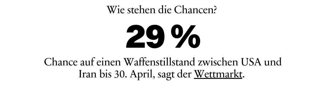 Damit reichen die möglichen Szenarien von einem Waffenstillstand über die Fortsetzung des Krieges auf aktuellem Niveau bis zu einer »Auslöschung« des Irans. Insbesondere die Fortsetzung dürfte aus Trumps Perspektive auf die Straße von Hormus wohl das größte Übel sein. Umso wahrscheinlicher werden die anderen Szenarien – deren politischen und ökonomischen Folgen allerdings kaum absehbar sind.